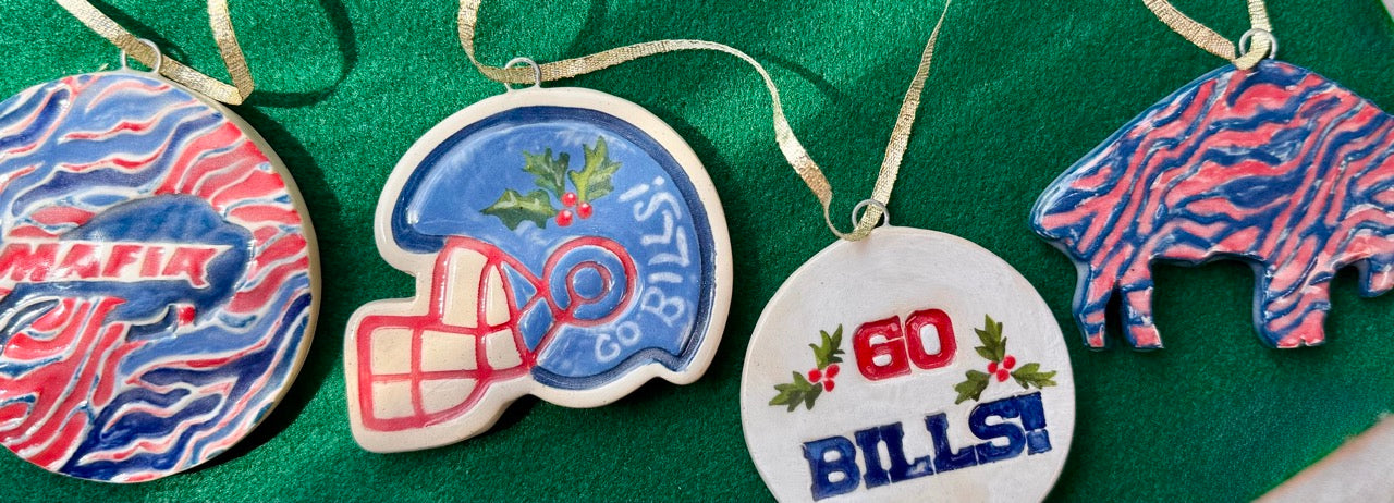 Join us to cheer on the Buffalo Bills for the 2025-26 season by painting a handmade ceramic holiday ornament for yourself or as a gift for someone special!